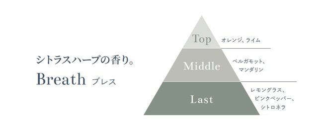 みずみずしいシトラスハーブの香りで、深呼吸するようにリフレッシュ。気持ちを整えたいときに。