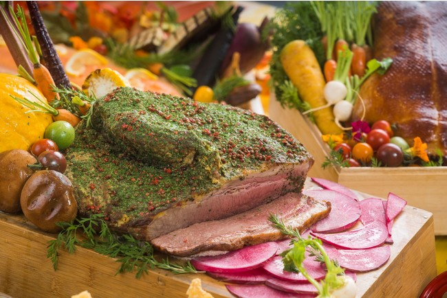 秋と言えば、収穫の秋、食欲の秋、芸術の秋。都会のリゾートとして親しまれているヒルトン福岡シーホークの開放的なアトリウム空間には、スイス人総料理長ゲハード・ガーバーとシアラのインターナショナルシェフ達が、見た目、香り、味覚、食感など多方面から秋の恵みを楽しんでいただこうと、約40種のお料理をご用意いたします。今回の注目は、3種のカービング料理。お客様の目の前で切り分け、ライブ感溢れる演出でご提供いたします。