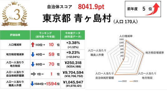 1位:東京都 青ヶ島村(総合ランキング3位)