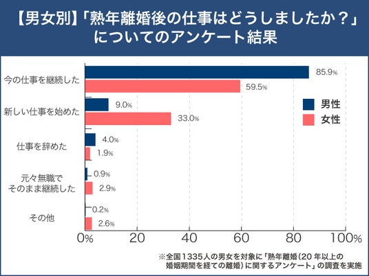 熟年離婚後に新しく仕事を始めた女性は男性の約4倍