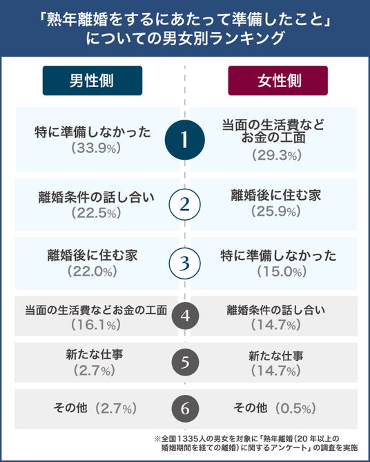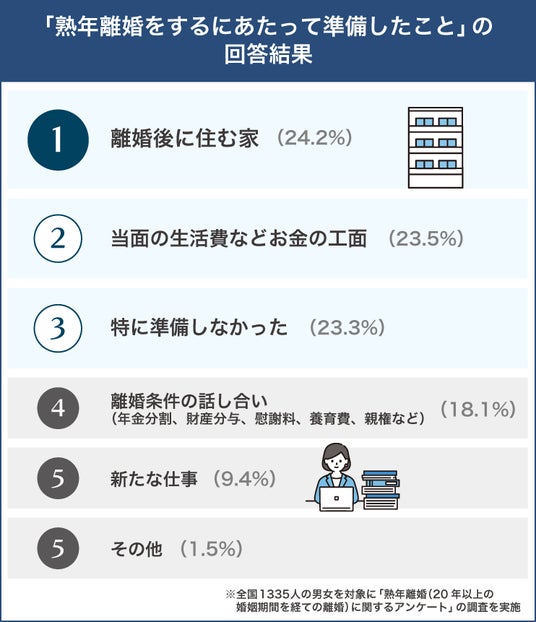 熟年離婚をするにあたって、準備したことは以下のランキングとなりました。