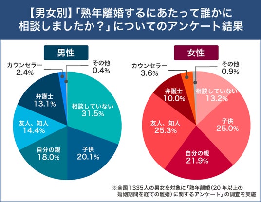 離婚問題の情報提供メディア「ツナグ離婚弁護士」を運営している株式会社Clamppy(本社:東京都中央区築地、代表取締役社長:大江 剛 / 寺田 真吾)は、熟年離婚を経験した全国1335人の男女を対象に、熟年離婚(20年以上の婚姻期間を経ての離婚)に関するアンケートを実施いたしました。調査の結果、男女で感じるメリット・デメリットの差が明らかになりました。