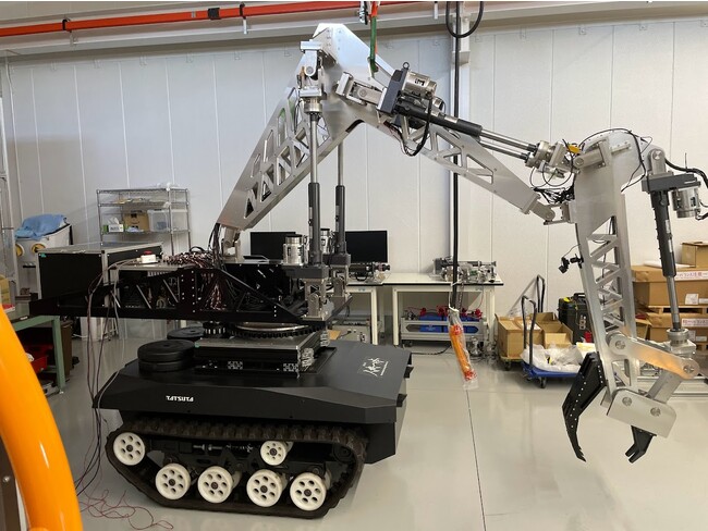 将来的な用途としては、有害物質汚染が懸念される危険環境下における部品交換、触診点検といった緻密な作業のほか、アスベスト等の有害物質含有構築物の解体、山岳トンネル工事の爆薬装填など、人が行なうこと自体に危険あるいは労災リスクが伴う作業を本機を操作して行なうことを想定しています。