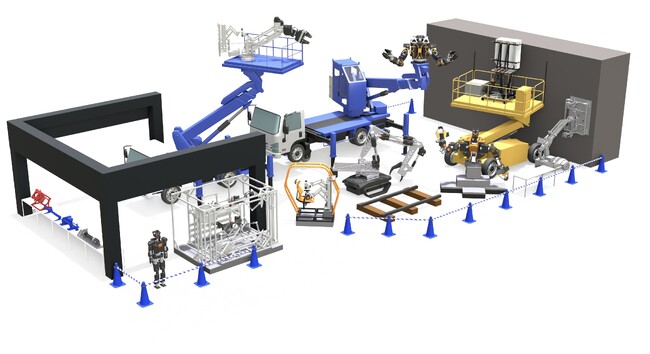 本展示では「203X 年 人機一体の先端ロボット工学技術で機械化された工事現場」というコンセプトを掲げ、工事現場で人が直接的に介在することなく複数のロボットが連携して作業する近未来の工事現場をイメージしたデモンストレーションを実施します。