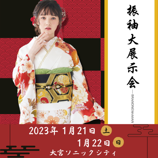 『振袖大展示会』を1月は大宮ソニックシティで2023年1月21日(土)・22日(日)の2日間、2月はさいたまスーパーアリーナにて2023年2月9日(木)・10日(金)・11日(土祝)・12日(日)の4日間開催いたします