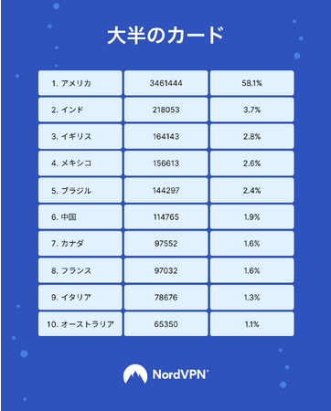 調査方法の全容はこちらをご覧ください。https://nordvpn.com/ja/research-lab/6-million-stolen-credit-cards-analyzed/
