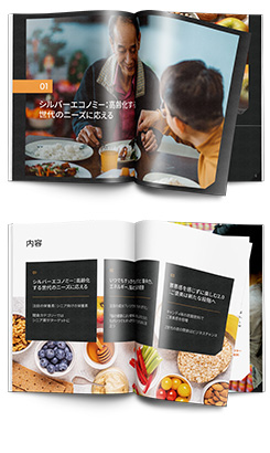 例:アクティブシニア向けのおやつ、健康に不安を抱えるシニア向けに注目の原料