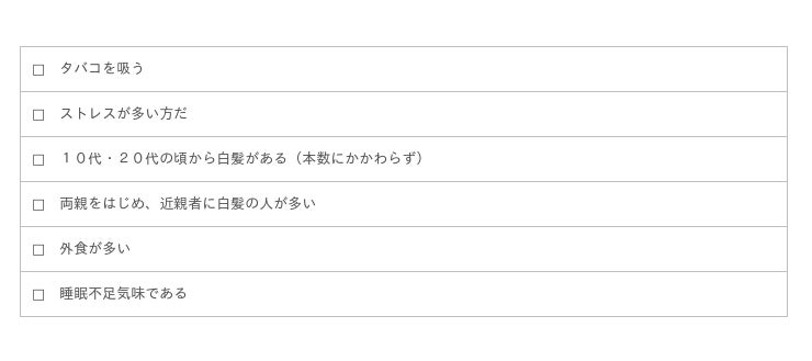 ※ひとつでも当てはまったら、将来急激に白髪が増える可能性あり!