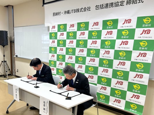 恩納村(村長:長浜善巳、以下「恩納村」)と沖縄JTB株式会社(代表取締役社長執行役員:桂原耕一、以下「沖縄JTB」)は、持続可能な観光地域づくりの実現に向け、双方が有する人的・物的資源を有効に活用した包括連携協定を2026年2月26日(木)に締結しました。