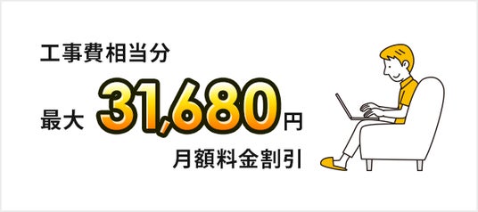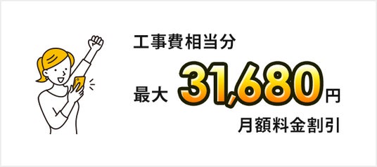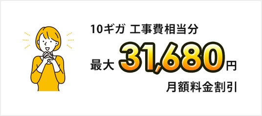SoftBank 光・10ギガ 工事費あんしんキャンペーン受付期間中に新たにSoftBank 光・10ギガを申し込みし、提供条件をすべて満たした場合、工事費相当分を月額基本料金より割引いたします。