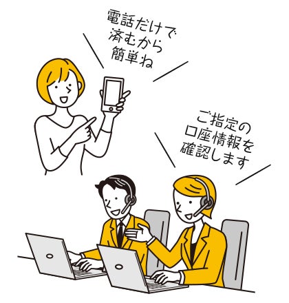 <3>キャッシュバック申請手続き不要!お申し込み電話時にオペレータが電話口でご指定の振込先情報をお聞きするだけ。煩わしさがなく、キャッシュバックの「もらい忘れ」や「手続き忘れ」がありません。