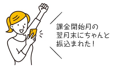 <2>キャッシュバック進呈は最短1ヵ月後!当社では、課金開始月の翌月末(最短1ヵ月)をめどに指定口座へお振り込みいたします(例:課金開始月が1月なら2月末振込)。