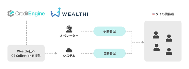 Credit Engine Asia Pte. Ltd.(本社:105 Cecil Street #2-02 The Octagon Singapore 06953、CEO:内山 誓一郎 以下「CEA」)は、2023年7月、タイのマイクロファイナンス事業者であるWEALTHI(本社:Supathanrangsri Real Estate Co., Ltd. 70/1 Rat Phatthana Road、Saphan Sung Subdistrict、Saphan Sung District、Bangkok 10240、以下「WEALTHI」)の債権回収業務において、デジタル化により効率化を図る実証実験(PoC:Proof of Concept)を開始しました。