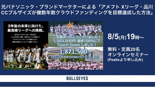 マイナースポーツであるアメリカンフットボールのチームが、クラウドファンディングで連続して目標達成してきた秘訣を、無料オンラインセミナーにて共有します。Peatix経由でお申し込みください。