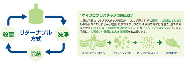 「おいしい水の宅配便」のボトルはプラスチックごみの削減にも一役買っています
