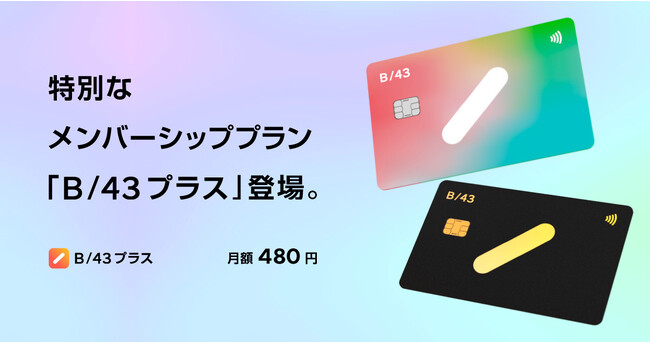 家計簿プリカ「B/43(ビーヨンサン)」を提供する株式会社スマートバンク(本社:東京都品川区、代表取締役:堀井 翔太、以下「当社」)は、2023年7月12日より、「お金を通して、未来を照らす」をコンセプトに「B/43プラス」の限定カードとメンバーシッププランを提供開始することをお知らせいたします。(URL:https://b43.jp/plus/)