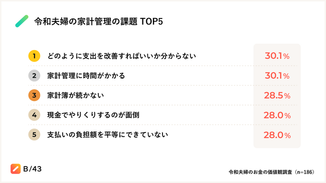 物価の上昇が続く中で節約志向は高まっています。一方で、共働き世帯が増えている中、ふたりで支出を管理することは簡単ではありません。当社調査により、令和の新婚夫婦は9割がふたりの家計を一緒に管理したいと考え、キャッシュレスでお互いに負担なく支出を正確に管理したいという意向があります。一方で、ふたりで家計管理している夫婦は5割以下で、「どのように支出を改善すればいいか分からない」ことが課題になっています。(※1)