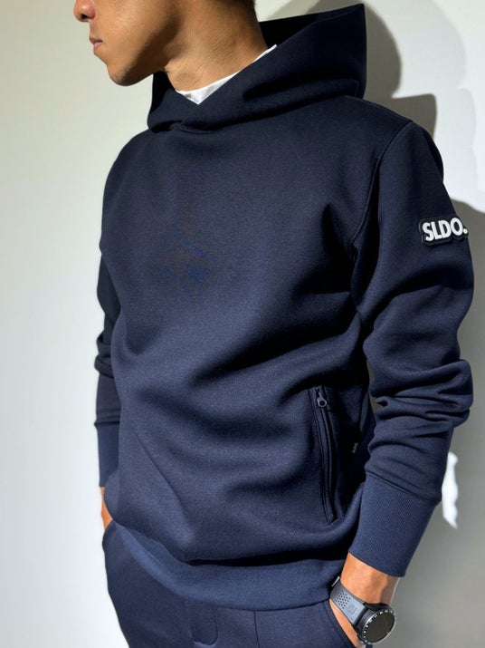 人気のライトダブルニットシリーズからフーディーが初登場。