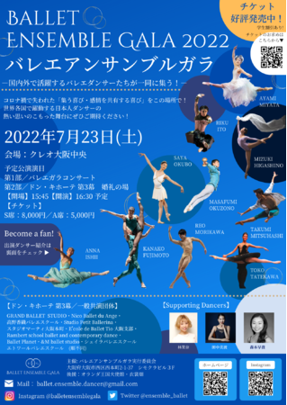 本舞台公演は、海外で活躍中のバレエダンサーと一般応募ダンサーたちが共演する夢のバレエ公演です。