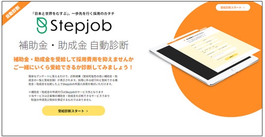サービス・ライフサイクルの課題解決を支援するポールトゥウィン株式会社(本社:愛知県名古屋市、代表取締役CEO:橘 鉄平、以下 ポールトゥウィン)は、日本で働きたい外国人と日本企業を「すばやくつなぐ」マッチングシステム 「Stepjob(ステップジョブ)」(以下 Stepjob)において、「補助金・助成金 自動診断システム」を新たにリリースいたしました。