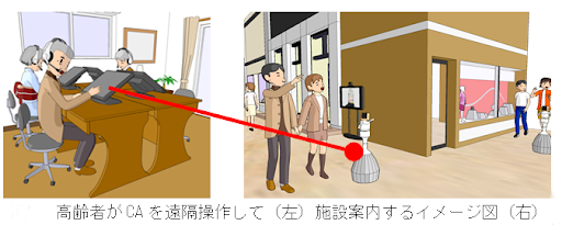 内容 :サイバネティックアバター(略称:CA、遠隔操作ができるロボットアバターやCGアバター)合計100体がATC内の様々な場所に配置され、ATCの施設、店舗、イベントの案内やプロジェクトの紹介、接客、警備などを行います。