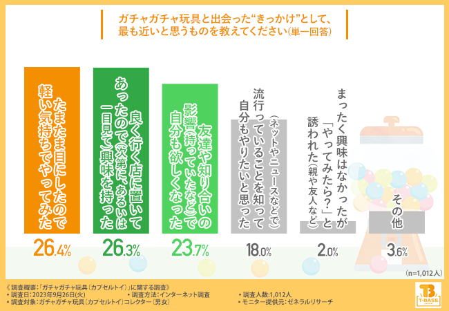 ガチャガチャ玩具に出会う“きっかけ”は、「たまたま」「良く行く店にあった」「友達や知り合いの影響」など機会は多い