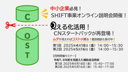 企業・事業所の脱炭素化を多角的に支援している株式会社エネルギーソリューションジャパン(東京都中央区、代表取締役:田崎剛史)は、高騰が続くエネルギーコストに苦しむ中小企業に向け、環境省SHIFT事業を活用してカーボンニュートラルを推進するとともに、エネルギーを見える化してコスト削減にもつながる、「カーボンニュートラルスタートパック」の無料オンライン説明会を2025年4月18日(金)、5月16日(金)に開催します。公募開始直前、事業の活用を検討中の企業様を対象に随時ご相談も受け付けています。