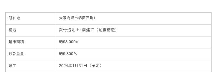 日鉄エンジニアリング株式会社(代表取締役社長:石倭行人、本社:東京都品川区、以下「当社」)は、このたび日本GLP株式会社(代表取締役社長:帖佐 義之、本社:東京都港区)、Jusda Supply Chain Management Co., LTD. (代表:杨秋瑾、本社:中国深圳市)およびシャープジャスダロジスティクス株式会社(代表取締役:楊 秋瑾、本社:大阪府堺市)による開発プロジェクト「GLP SJL堺(所在地:大阪府堺市、以下「本施設」)」を着工いたしました。建設場所は、阪神高速4号湾岸線と阪神高速6号大和川線の「三宝JCT」から3.5km、大阪南港から10kmに位置し、配送業者の営業所も近接した最適な立地となります。