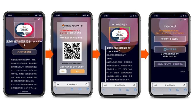本イベントで配布されるNFTはSUSHI TOPが開発したブラウザウォレット(特許出願中)により、ウォレットや暗号資産を持たない方でも簡単にNFTを受け取れるようになっています。詳細はこちらの受け取り方ガイドをご覧ください。https://www.sushitopmarketing.com/blog/tokyu_nft_guide