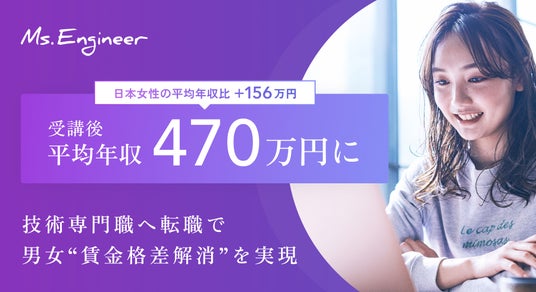 Ms.Engineer株式会社(代表取締役やまざきひとみ)は、同社が提供する教育プログラム「コーディングブートキャンプ」を修了した女性たちが、転職後の平均年収として470万円を達成※1したことを発表いたします。これは、プログラム受講前の平均年収399万円から比較すると約71万円の増加であり、日本女性の平均年収314万円※2と比較しても約156万円の顕著な増加です。