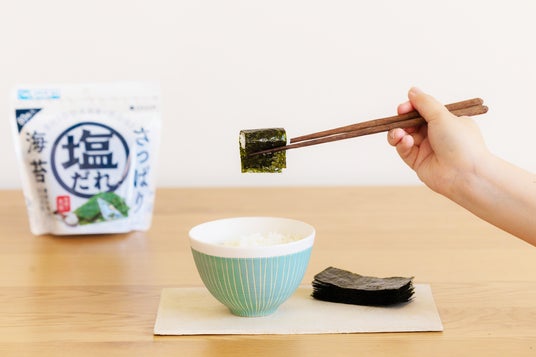 海苔の定番商品「味付け海苔」の新しい商品開発を検討した際に、市場では醤油ベースの味付け海苔が多いが、塩味は少ない。そこに着目し塩ベースの味付け海苔に挑戦しました。