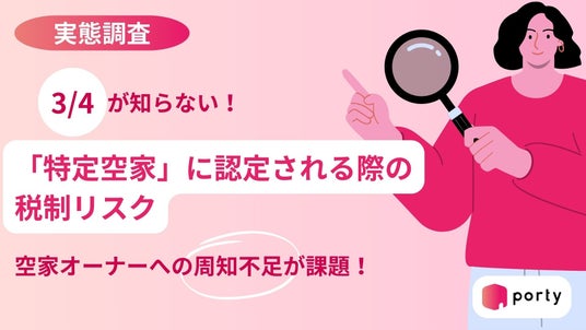 株式会社ポルティ(神奈川県川崎市、代表取締役:平 瑶平、以下「ポルティ」)は、全国の空き家オーナー(または相続予定の方)200名を対象に、「特定空家」に認定されると住宅用地の固定資産税軽減特例が外れるリスクについての認知状況を調査しました。