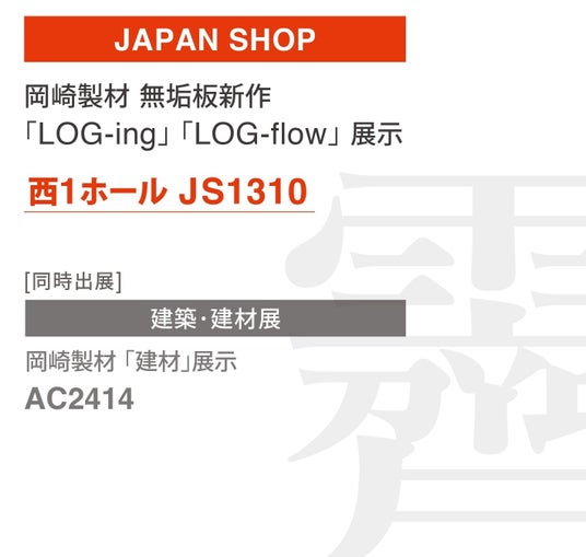 創業1917年(大正6年)、100年超の歴史を有する岡崎製材株式会社(本社:愛知県岡崎市 代表取締役:八田 欣也、以下「同社」という)は、3月3日(火)から6日(金)までの4日間、東京ビッグサイトで開催される第55回店舗総合見本市「JAPAN SHOP 2026」(以下「JAPAN SHOP」という)へ出展。JAPAN SHOPでは、国産材:欅に伝統工芸を融合させた「LOG-ing」の新モデルを中心に展示。さらに、LOG-ingの思想を受け継ぐ「LOG-flow」もお披露目する。