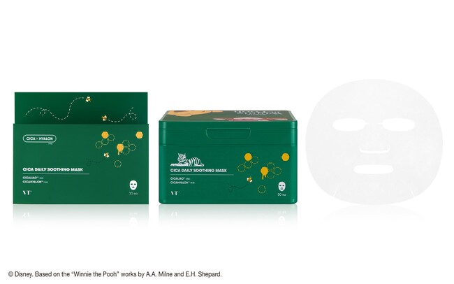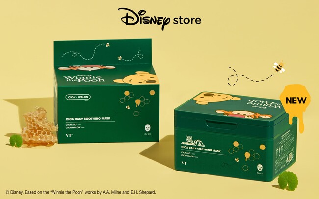 日本のCICA(シカ)ブームを牽引してきた韓国コスメブランド「VT」と、ディズニー公式グッズを販売するディズニーストアの共同企画により、VTのベストセラー商品「CICA デイリースージングマスク」は8月3日の「はちみつの日」を記念してディズニーストアオリジナルデザインのプーさんと仲間のティガーが描かれたパッケージになって本日より数量限定で発売いたします。