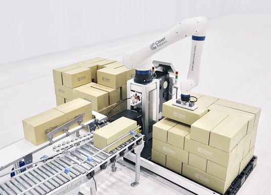 「Palletizy(パレタイジー)」は、段ボールの積付け作業を自動化する小型・移動式の協働パレタイズロボットです。