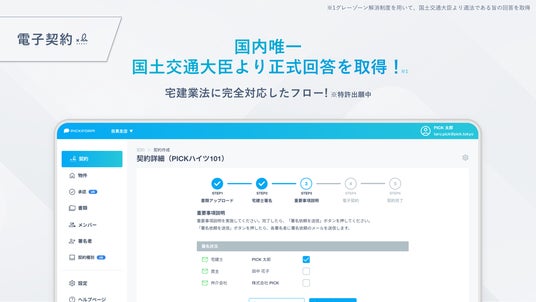 「PICKFORM 電子契約」の提供により、契約書や重要事項説明書の電子化が進み、これまでの紙を中心とした形態から、よりスマートな取引が増えてきております。
