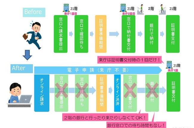 これにより、24時間、365日、どこでも手続きが可能となります。