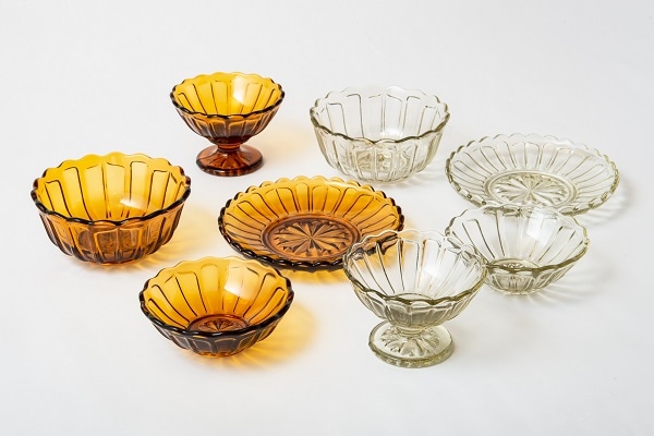 明治32年創業、手作りにこだわった和の趣き、懐かしさの漂うガラス食器を作り続けている廣田硝子。今回の器は昭和に作った金型を使い、アコメヤ限定カラーで作成。レトロモダンで懐かしく、可愛らしい器に仕上がりました。