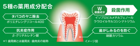 歯の汚れを取る、歯がしみるのを防ぐ、歯周病予防*6、口臭予防など、ホワイトニング効果*2 を発揮しながら、トータルケアを実現。殺菌成分を2つ配合(IPMPとLSSのダブル殺菌成分*5)で原因菌を殺菌します。