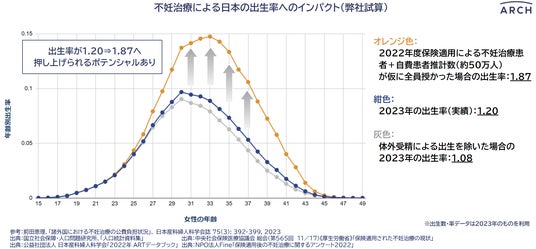 不妊治療による日本の出生率のインパクト(ARCH試算)