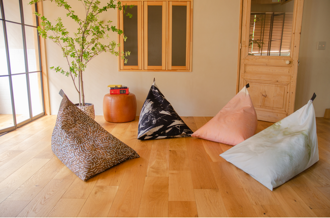 話題のビーズクッション「tetra」(※)にFAVORRICオリジナルデザインが新登場。座ると優しくフィットして、おうち時間をより快適に