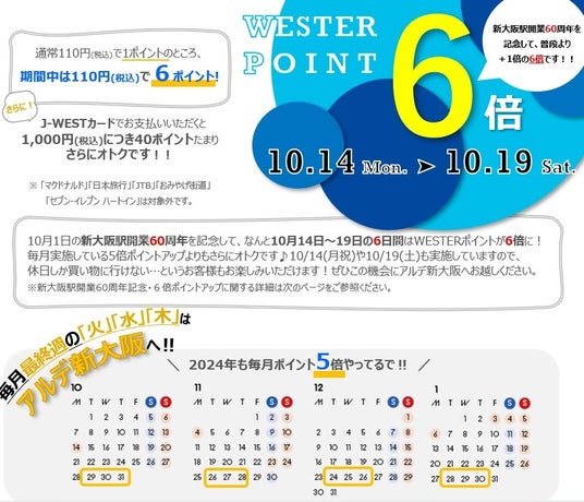 4.「6日間のWESTERポイント6倍キャンペーン」開催!