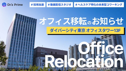 この度、株式会社ドクターズプライムは、事業拡大に伴い新拠点へ移転することを決定いたしました。新拠点は現行拠点の約10倍となる700坪へと大幅に拡張し、特にヘルスケア分野に焦点を当てた「未来型コワーキングスペース」を中核とする新たなサービス展開の拠点といたします。