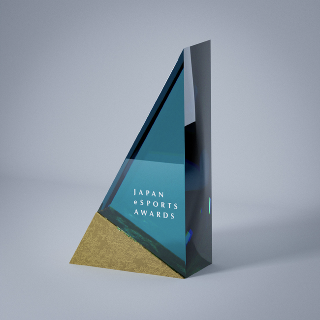 トロフィーは日本eスポーツアワードをモチーフにした三角形のデザインとなっており、「自己表現」や「想像力」の象徴であるターコイズブルーと格式高さを表現するゴールドの高級感とオリジナリティ溢れる魅力的なアワードであることを表現しています。