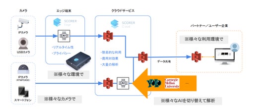 〈SCORERプラットフォーム〉様々なAIをエッジ・クラウドの両方で運用可能なAIプラットフォーム。昨今は生成AIを稼働させ、複数のプロダクトを運用中。