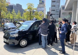 「こちタク」サービスの運用開始に伴い、高知市役所前にて出発セレモニーを執り行いました。高知市の桑名 龍吾市長を始め、高知市タクシー組合の明石 健市理事長、REAの坂田 敬次郎 社長が挨拶で登壇し、「こちタク」の導入により、高知市民の皆様の移動の体験価値を向上させ、より暮らしやすい街づくりを目指すとともに、高知市の活性化に貢献したいという想いが述べられました。