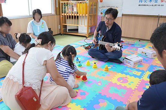 横浜市で総合ポピュラー音楽教室を運営する株式会社アダチ音研は、2024年9月16日(月・祝)、横浜市南区にある「つどいの広場 えの木」にて、「はじめてのジャズ・ブルースで、アドリブ演奏にチャレンジ!」と題して、お子さまと保護者さまに向けたイベントを開催しました。それぞれの音階に分かれたミュージックベルを使ってギターの演奏に合わせてアドリブ演奏を体験してみようという内容です。