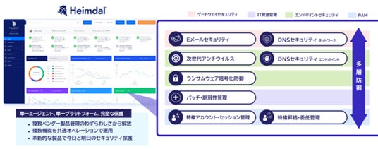 Heimdalセキュリティスイート製品(DNS、パッチ・脆弱性管理、PEDM、NGAVなど)と統合運用が可能。