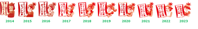 また、2014年からは『パインぱん』のキャラクターをパッケージに採用。毎年、メッセージを掲げた様々なテイストの女の子【パインぱんガール】をデザイン。実は、その年の開発担当者がモデルになることも!?パインぱんと併せて、こだわりのパッケージにもご注目ください。