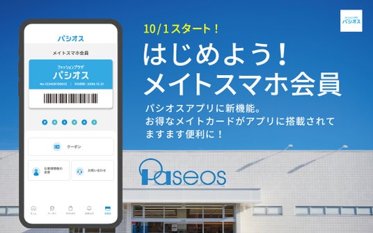 株式会社田原屋(本社所在地:神奈川県川崎市、代表取締役会長:田熊 太郎、代表取締役社長:甲斐 直裕)は、ファッションプラザパシオスで「メイトスマホ会員」サービスを開始いたします。